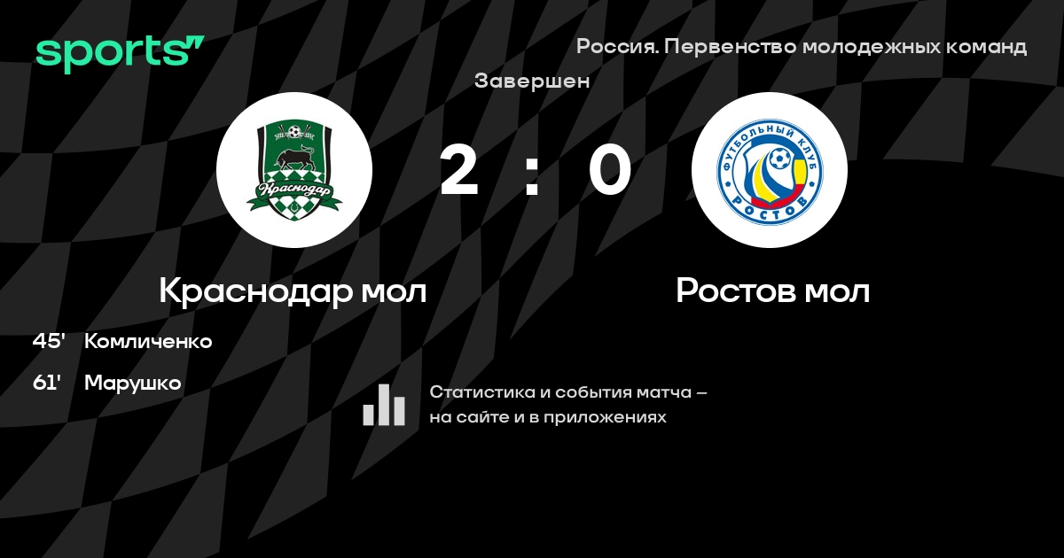 Первенство молодежных команд. 16-й тур. «Ростов» одолел «Уфу» и другие результаты
