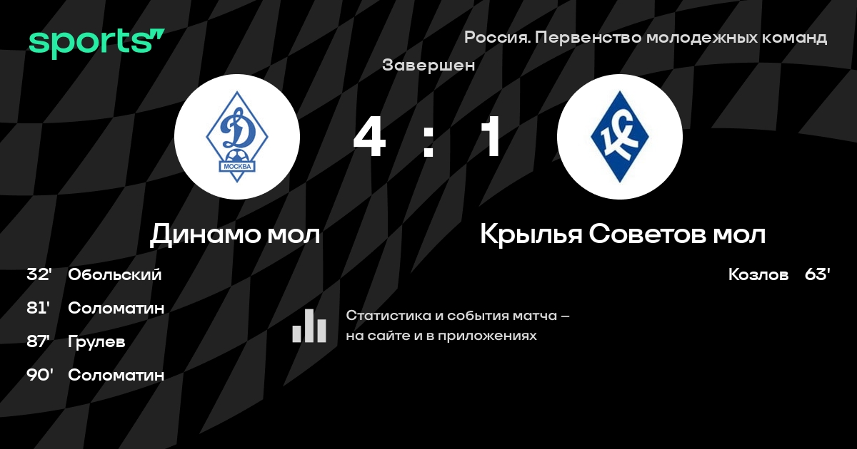 Первенство молодежных команд. «Динамо» обыграло «Краснодар» и другие результаты
