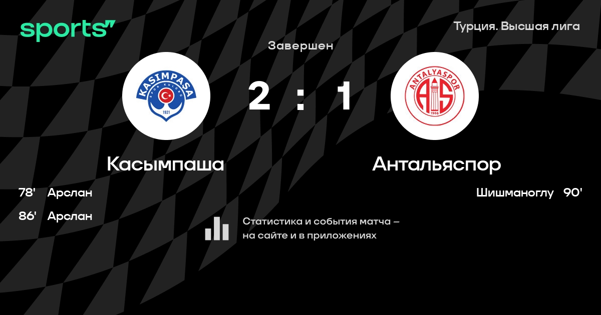 | 7 | Касымпаша | 34 | 14 | 8 | 12 | 50 | 40 | +10 | 50 | ||