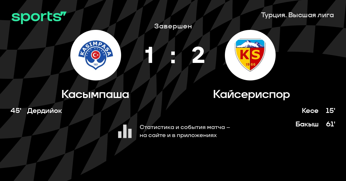 | 7 | Касымпаша | 34 | 14 | 8 | 12 | 50 | 40 | +10 | 50 | ||