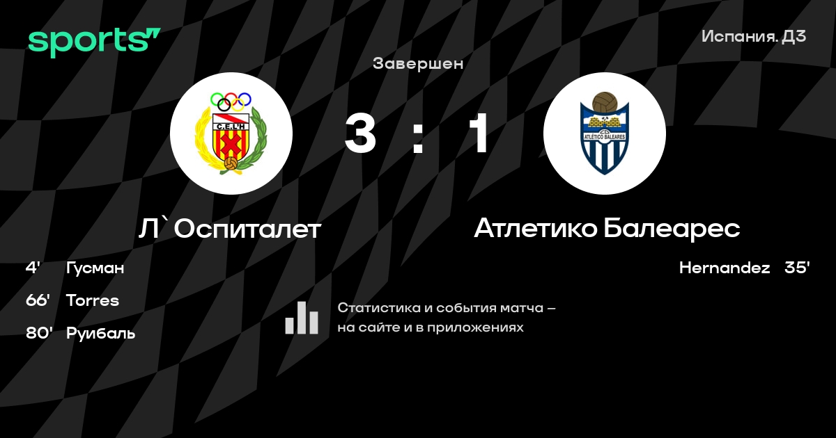 Трансляция Л`Оспиталет - Атлетико Балеарес