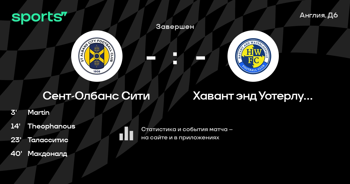 Сент-Олбанс Сити - Хавант энд Уотерлувилл: положение в турнире