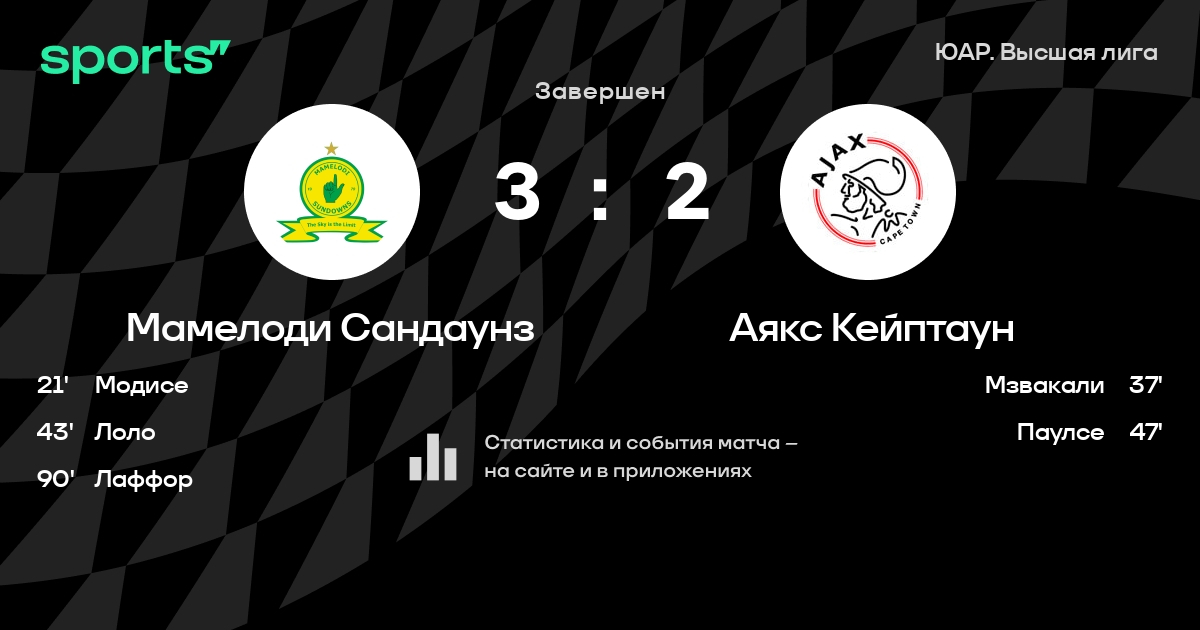 | 1 | Мамелоди Сандаунз | 30 | 22 | 5 | 3 | 55 | 20 | +35 | 71 | ||
