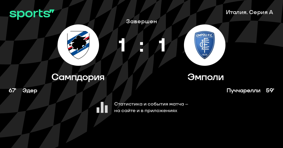 Чемпионат Италии. 10-й тур. «Сампдория» сыграла вничью с «Эмполи» и другие результаты