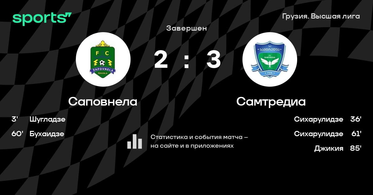 Giorgadze - Endeladze, Джимшелейшвили - Makaridze, Tskipurishvili, Bandzeladze, Alavidze, Шугладзе - Бухаидзе, Ambroladze, TkeshelashviliЗапасные: Kakhatelidze, Robakidze, Shalamberidze, Butskhrikidze, Tavadze, Muradashvili, Zeinklishvili