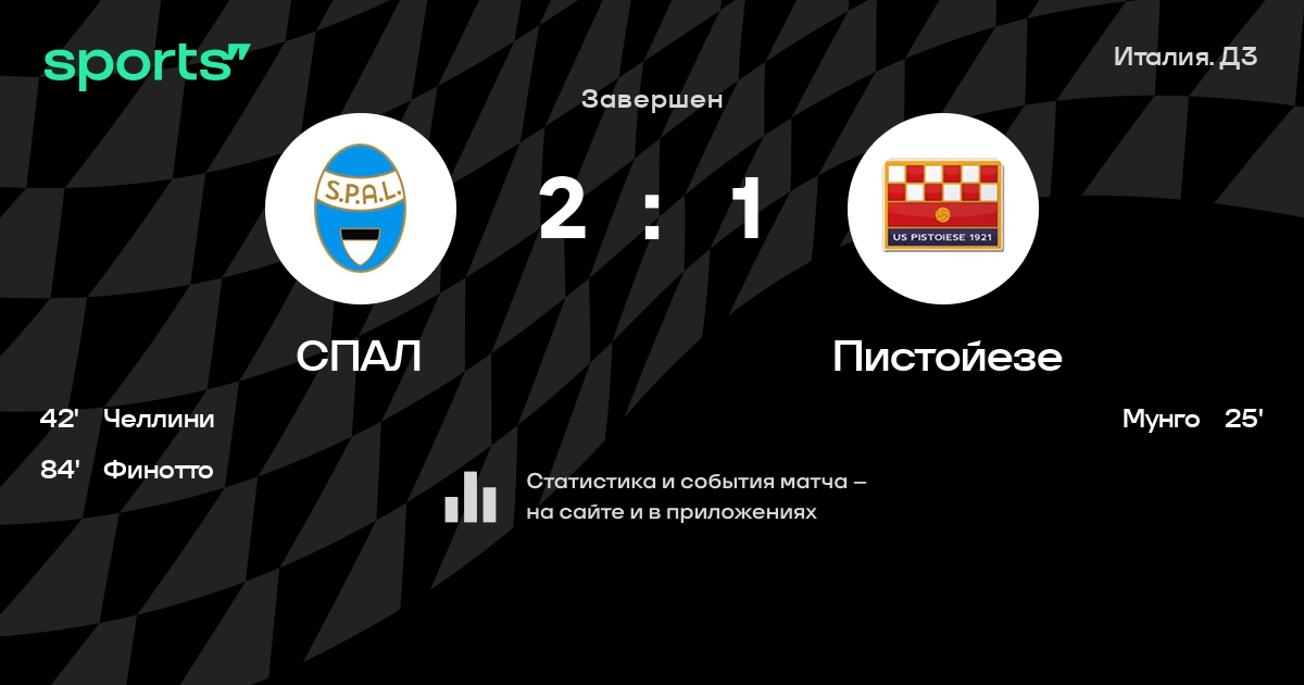 Брандуани - Джани, Гаспаретто, Коттафава - Мора, Беллемо, Кастаньетти, Ладзари, Ди Кинцио - Финотто, ЧеллиниЗапасные: Контини-Барановский, Чеккарони, Сильвестри, Бегетто, Posocco, Спиги, Capezzani, Ферри, Дзигони