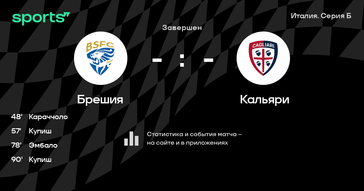 Сторари - Крайнц, Пизакане, Мурру, Чеппителли - Ди Дженнаро, Фоссати, Дессена - Джаннетти, Мелькьорри, Жоао ПедроЗапасные: Краньо, Бенедетти, Саламон, Бальцано, Дейола, Тельо, Сау, Фариас, Черри