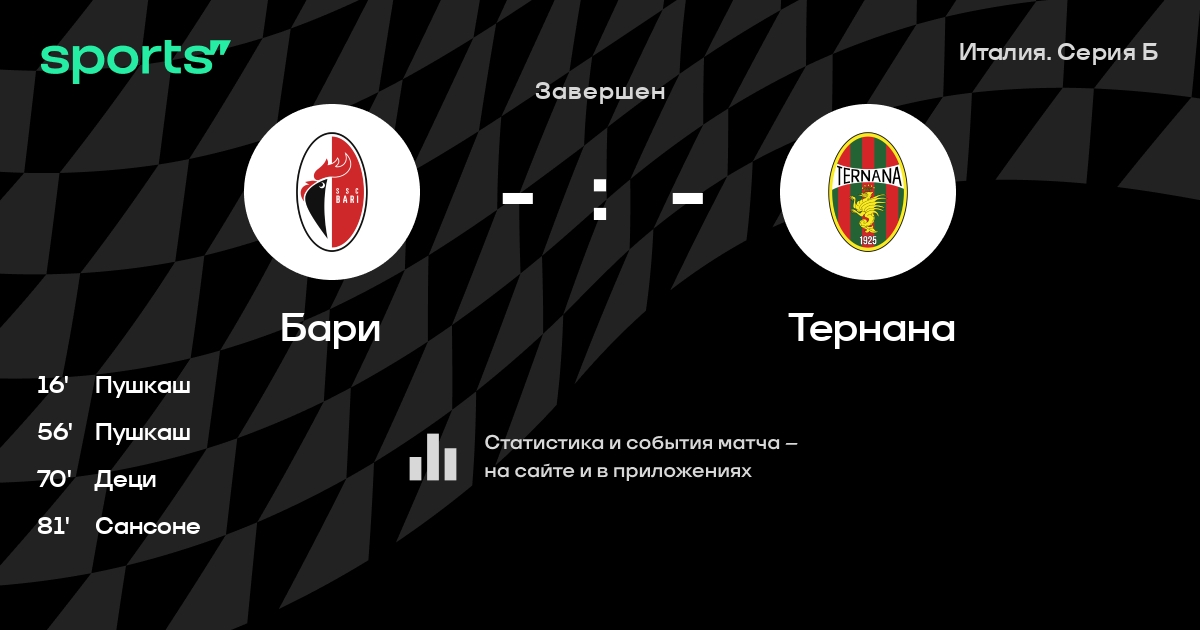 Микаи - Донкор, Тонуччи, Ди Чезаре - Ди Ноя, Генцоглу, Деци, Валиани - Сансоне, Пушкаш, РозинаЗапасные: Гуарна, Сиссоко, Рада, Минала, Ромици, Дефенди, Боатенг, Де Лука