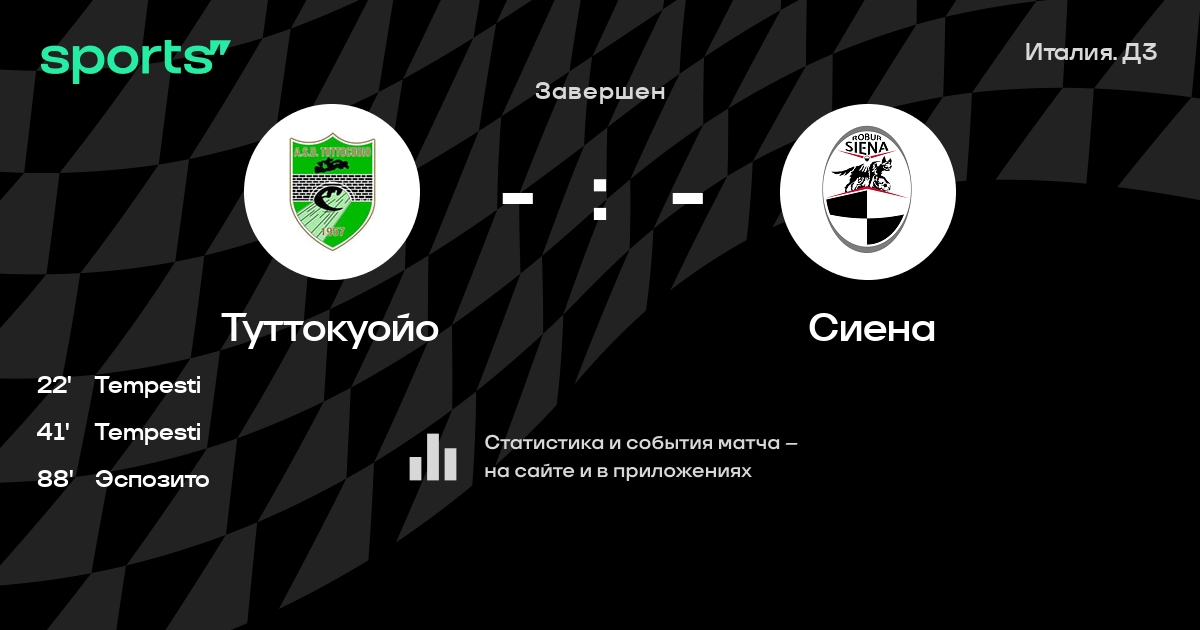 Feola - Peverelli, Бакини, Paparusso, Falivena - Риччарди, Caponi, Мурони, Масиа - Tempesti, CherilloЗапасные: Эспозито, Marchetti, Фраре, Picascia, Ferraro, Кальвано, Эспозито, Giovinco, Fofana, Бангал