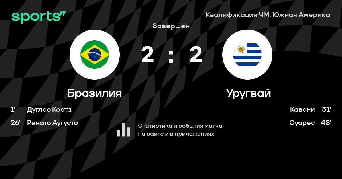 Муслера - Перейра, Коатес, Викторино, Фусиле - Родригес, Весино, Аревало, Санчес - Суарес, КаваниЗапасные: Кампанья, Сильва, Сильва, Варела, Лаксальт, Полента, Лодейро, де Арраскаэта, Гонсалес, Эрнандес, Стуани, Ролан
