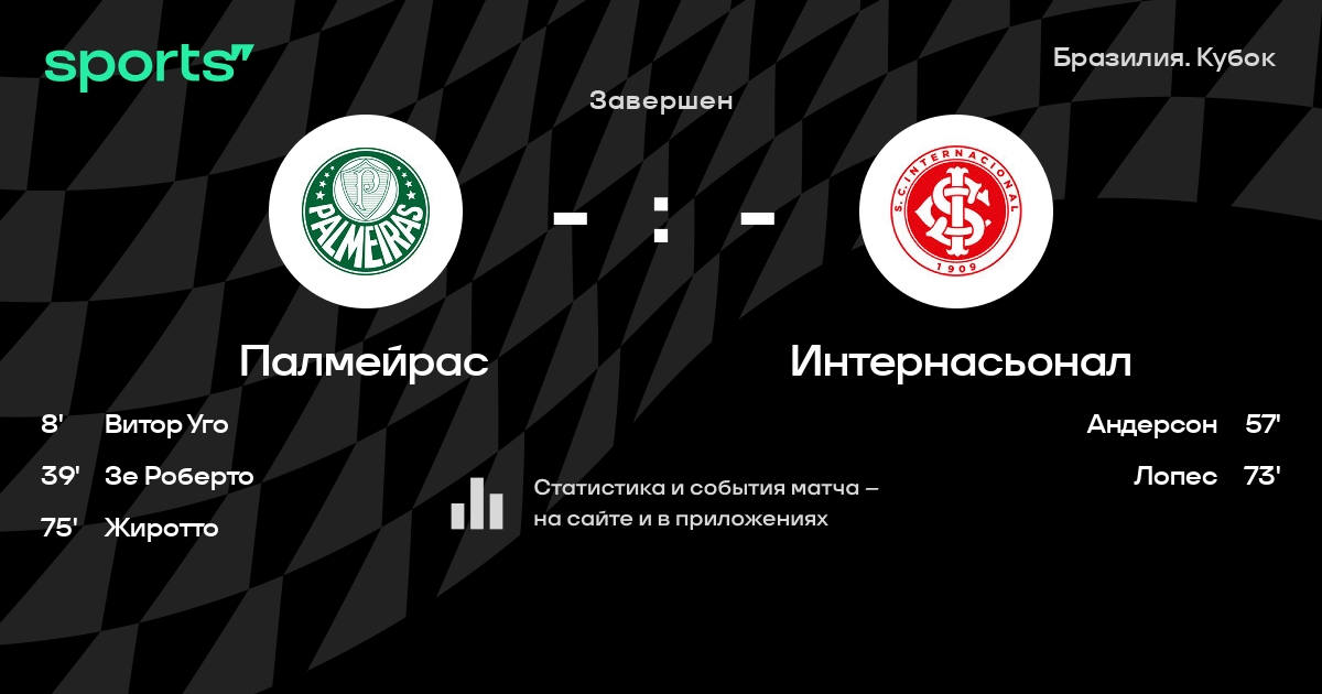 Прасс - Зе Роберто, Витор Уго, Жаксон, Лукас - Ароука, Амарал, Габриэл Жезус, Робиньо, Дуду - БарриосЗапасные: Аранья, Жоао Педро, Эжидио, Жиротто, Виктор, Натан, Альионе, Феллипе Габриэл, Моуче, Кристальдо, Келвин