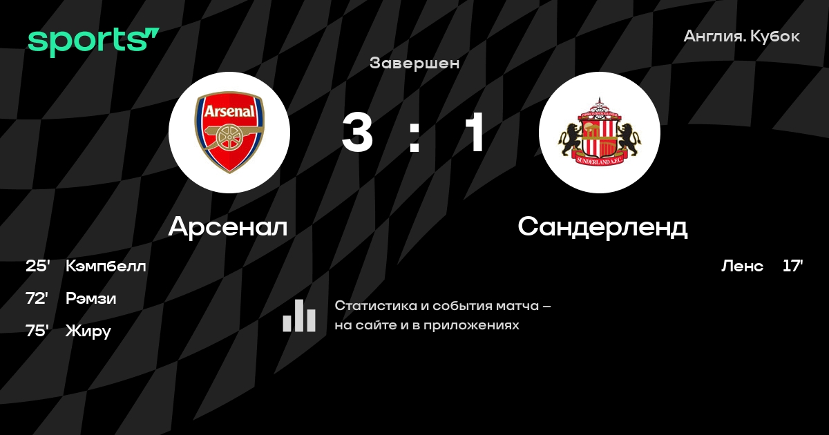 Чех - Гиббс, Косьельни, Габриэл Паулиста, Бельерин - Чемберс, Окслейд-Чемберлен, Уолкотт, Ивоби, Кэмпбелл - ЖируЗапасные: Мэйси, Дебюши, Уиллок, Рен-Аделаид, Рэмзи