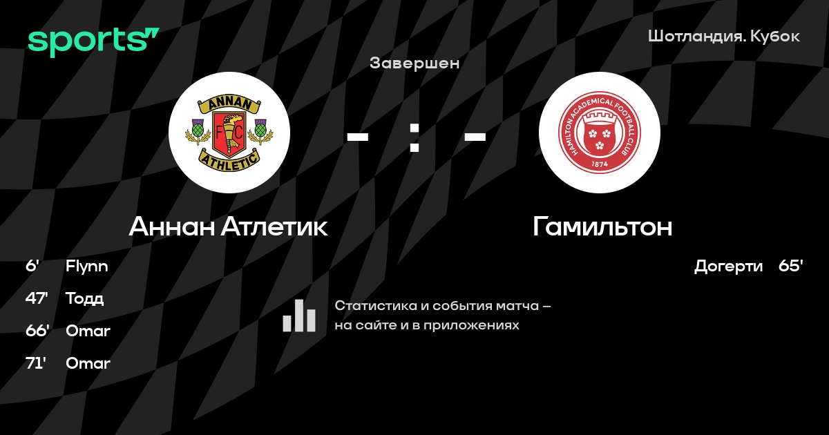 Харт - McNiff, Финни, Black, Watson - McStay, Тодд, Sloan, Omar - Flynn, WeathersonЗапасные: Карри, Park, Norman, McColm, Osadolor