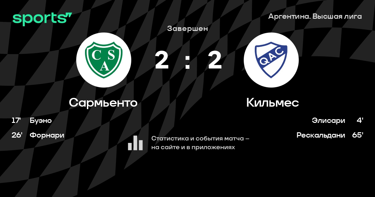 Бенитес - Бонтемпо, Мальречауффе, Алегре, Боттино - Империале, Элисари, Бранья, Калельо, Перес Годой - РескальданиЗапасные: Дульчич, Селайя, Суарес, Арсе, Моралес, Мансилья, Андрада