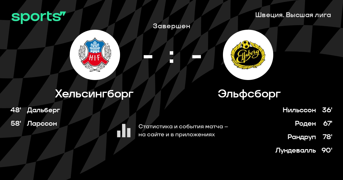 Стур-Эллегор - Лундквист, Хорн, Йонссон, Маннс - Лундевалль, Классон, Роден, Хедлунд - Пруделль, НильссонЗапасные: Хассан, Рандруп, Андреассон, Хаугер, Кинд Бендиксен, Розенквист, Фрик
