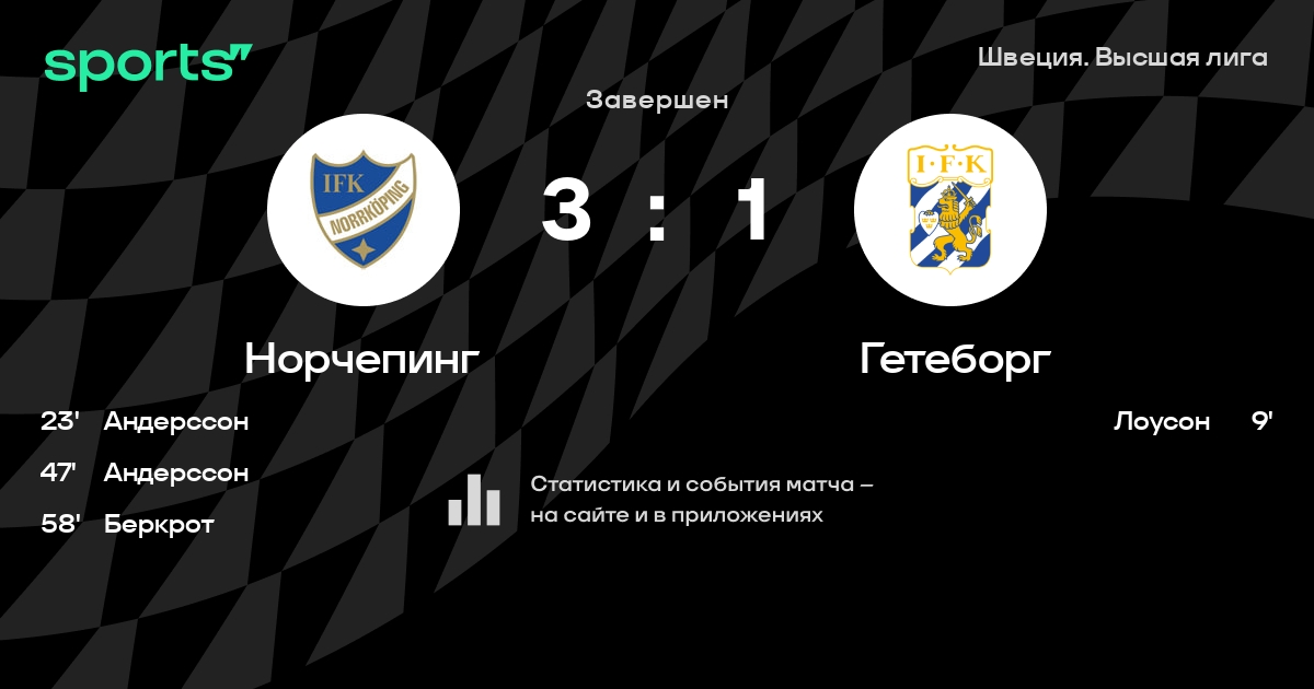 Далин - Нордстрем, Йонссон, Бьерсмюр, Саломонссон - Хюсен, Петтерссон, Эрикссон, Лоусон, Анкерсен - ОумарссонЗапасные: Альвбоге, Япи-Сало, Лекселль, Джеймисон, Дальквист, Кассим