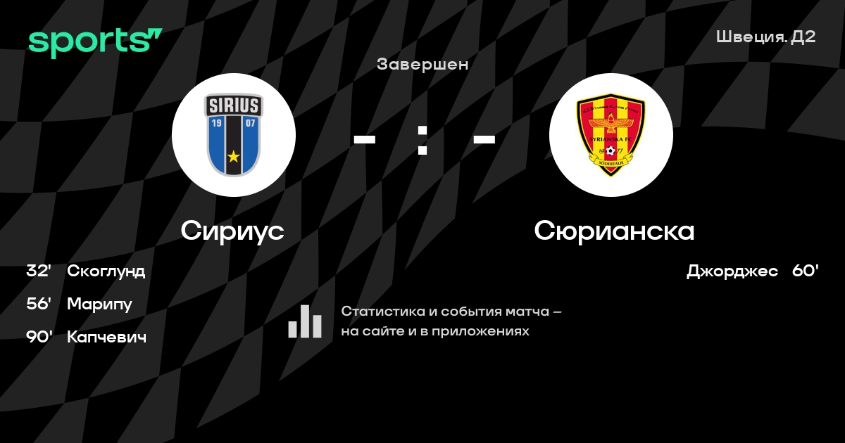 Лекстрем - Хопкинс, Ларсон - Марипу, Нильссон, Скоглунд, Сарфо, Сирелиус, Тор, Густафссон - БьеркебаумЗапасные: Юнссон, Bala, Бергман, Андерссон, Torres, Капчевич