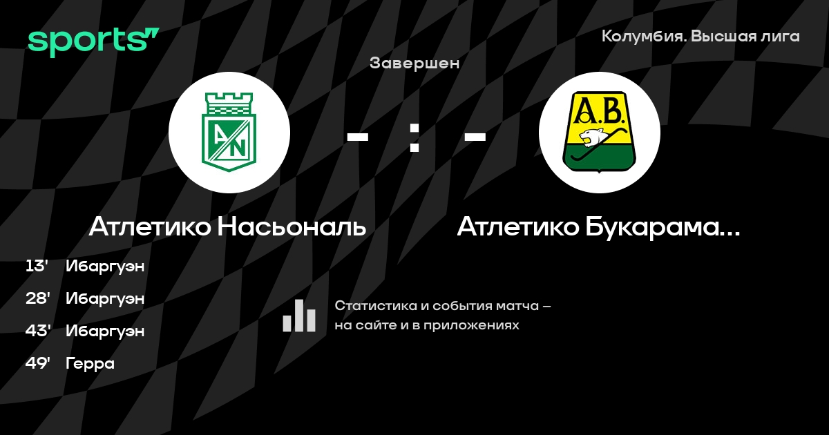 Трансляция Атлетико Насьональ - Атлетико Букараманга