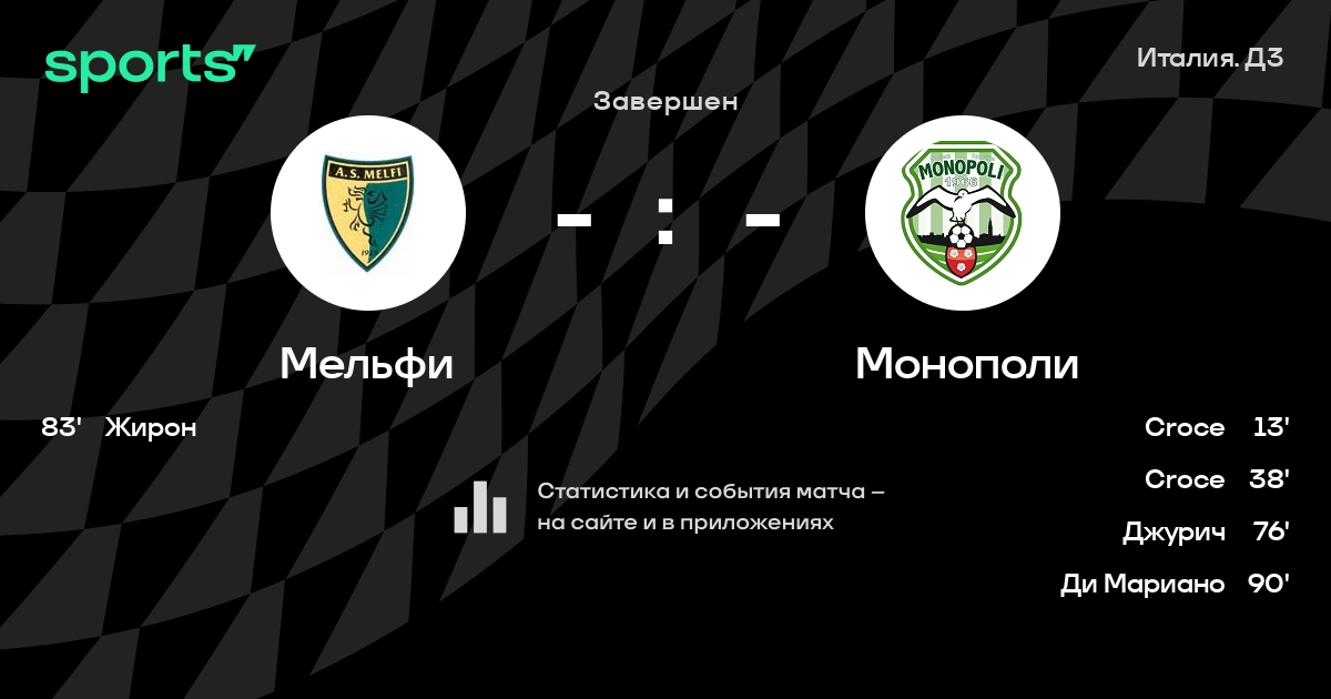 Pellegrino - Баккетти, Esposito, Luciani, Меркаданте, Пинто - Meduri, Джурич, Romano - Croce, GambinoЗапасные: Mirarco, Беи, Ferrara, Батталья, Ricucci, Tarantino, Maresca, Viola, Лескано, Розафьо, Ди Мариано