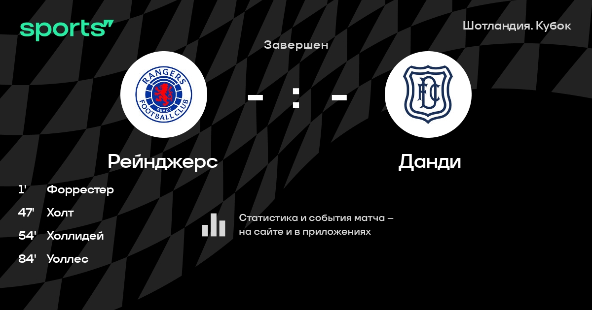 Фодерингэм - Уоллес, Уилсон, Тавернье, Кирнан - Холт, Холлидей, Форрестер, Болл - Маккей, МиллерЗапасные: Белл, Робертс, Томсон, Берт, Кларк