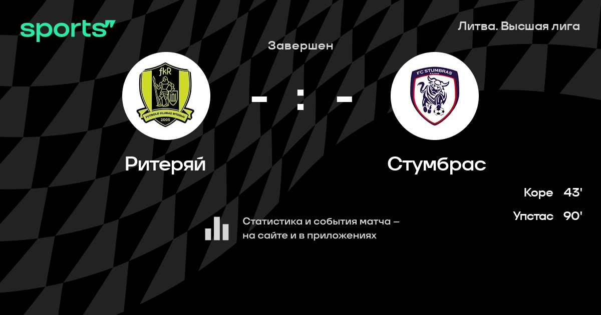 | 5 | Стумбрас | 33 | 8 | 9 | 16 | 43 | 63 | -20 | 33 | ||