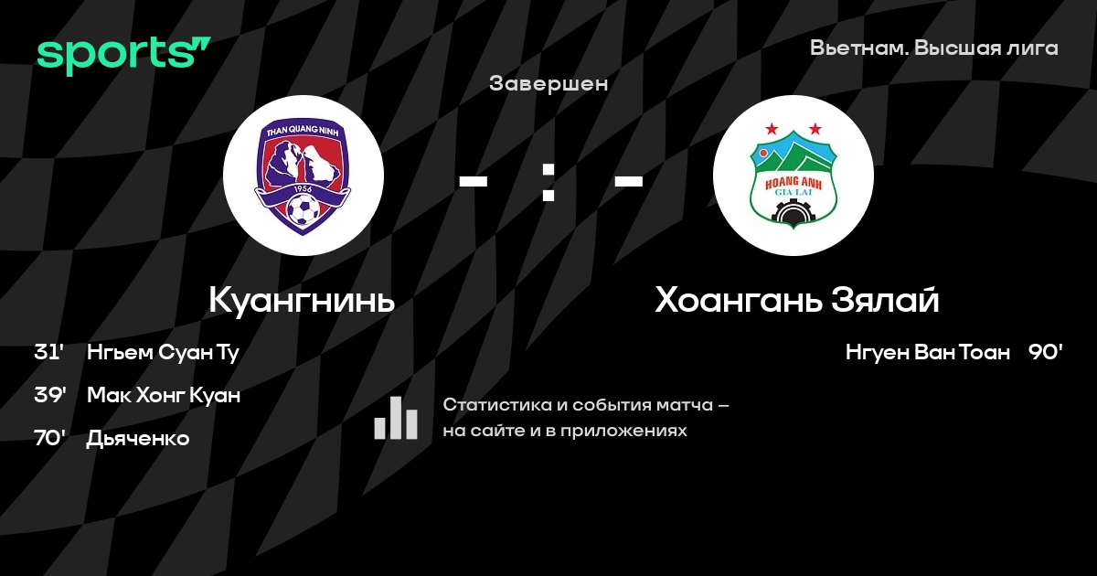 То Винь Лой - Ле Ван Шон, Нгуен Фонг Хонг Зуй, Нгуен Ван Тханг, Зыонг Ван Фо, А Хоанг, Чан Хыу Донг Чьеу - Фан Тхань Хау, Ву Ван Тхань, Чан Минь Выонг - Нгуен Ван ТоанЗапасные: Ле Ван Чыонг, Тхан Тханг Тоан, Нгуен Танг Тьен, Ле Дык Лыонг, Нгуен Хыу Ань Тай, Буй Чан Ву, Хоанг Тхань Тунг, Ле Хоанг Тхонг, Динь Тхань Бинь