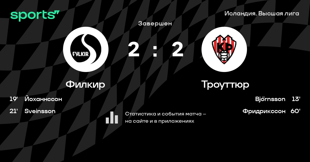 | 1 | Хафнарфьордур | 22 | 12 | 7 | 3 | 32 | 17 | +15 | 43 | ||