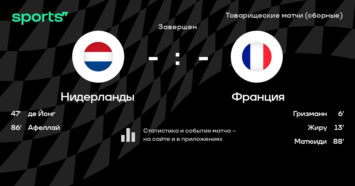 Силлессен - Виллемс, Блинд, ван Дейк, Брума, Велтман - Классен, Снейдер, Класи - Промес, де ЙонгЗапасные: Зут, Вермеер, Летсхерт, Карсдорп, Базур, ван Анхолт, Вейналдум, Афеллай, Янссен, Депай, Хунтелар, Нарсинх