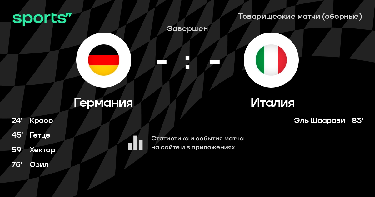 тер Стеген - Хектор, Хуммельс, Рюдигер, Мустафи, Руди - Дракслер, Мюллер, Озил, Кроос - ГетцеЗапасные: Трапп, Лено, Гинтер, Та, Ройс, Шюррле, Джан, Хедира, Крамер, Подольски, Бельараби, Фолланд, Гомес