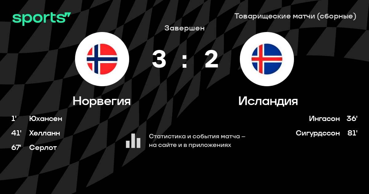 Кристинссон - Магнуссон, Ингасон, Сигурдссон, Хейкссон - Хадльвредссон, Сигурдссон, Гуннарссон, Гудмундссон - Финнбогасон, БедварссонЗапасные: Йонссон, Халльдоурссон, Арнасон, Херманнссон, Сайварссон, Бьярнасон, Бьярнасон, Траустасон, Сигурйонссон, Скуласон, Сигторссон