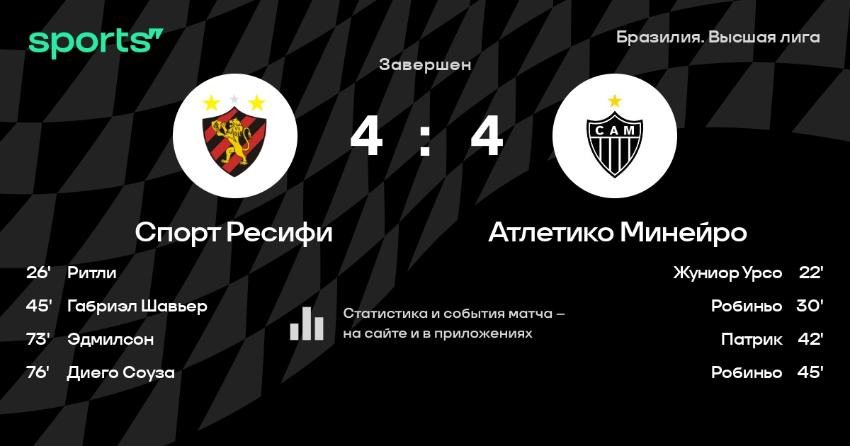 Трансляция Спорт Ресифи - Атлетико Минейро