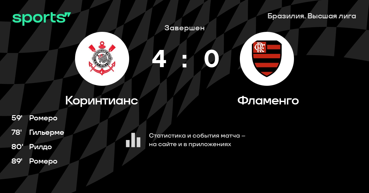 Кассио - Уэндел, Бальбуэна, Педро Энрике, Фагнер - Бруно Энрике, Родригиньо, Маркиньос Габриэл, Джованни Аугусто, Ромеро - ЛусианоЗапасные: Валтер, Каике, Арана, Лео Принсипе, Лео, Вилсон, Гильерме, Марлоне, Лукка, Майкон, Исаак, Рилдо