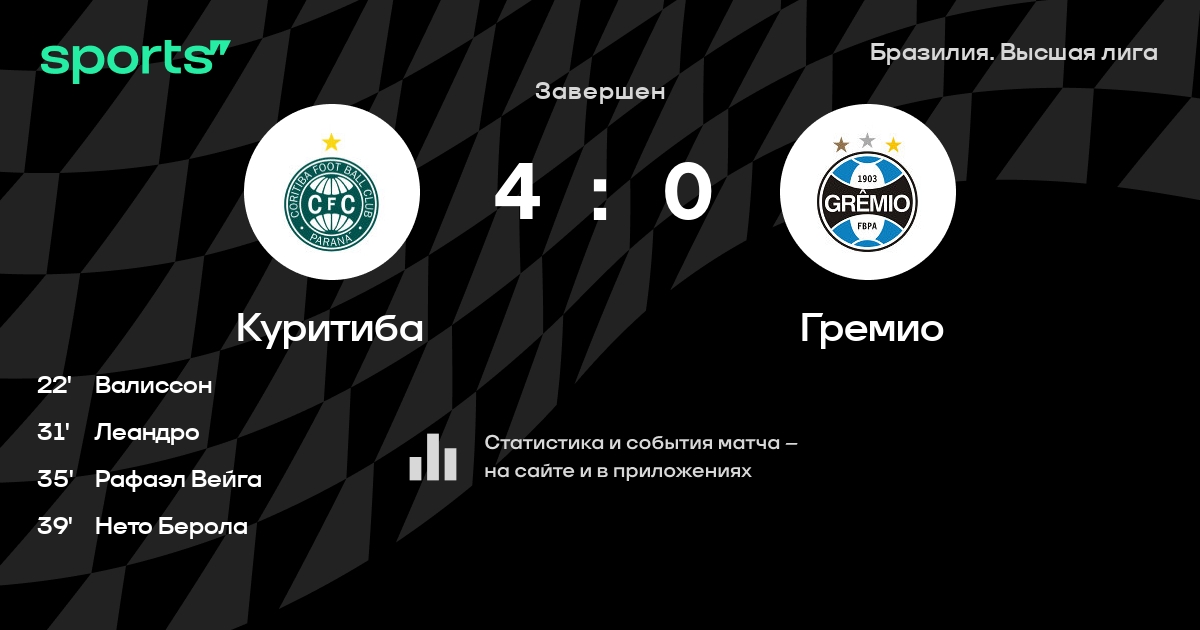 Чемпионат Бразилии. 35-й тур. «Аваи» переиграл «Коринтианс», Макси Лопес принес ничью «Гремио» в игре с Крузейро