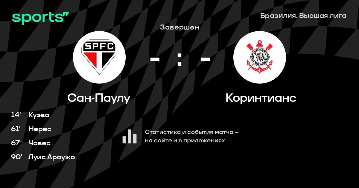 Кассио - Уэндел, Бальбуэна, Вилсон, Фагнер - Маркиньос Габриэл, Виллианс, Родригиньо, Джованни Аугусто, Ромеро - ГильермеЗапасные: Видотто, Каике, Арана, Лео Принсипе, Педро Энрике, Марсиэл, Марлоне, Барони, Лукка, Камашо, Густаво, Рилдо