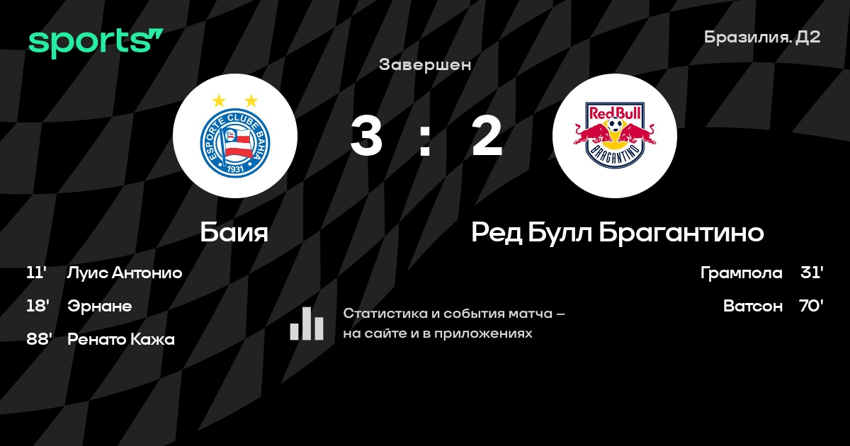Муриэл - Мойзес, Жаксон, Паньюссат, Эдуардо - Рене Жуниор, Луис Антонио, Витиньо, Режис, Эдигар - ЭрнанеЗапасные: Андерсон, Жан, Жоао Пауло, Фонсека, Тинга, Эдер, Густаво, Ренато Кажа, Фейжао, Уэсли Ната, Марио Сержио, Аллано