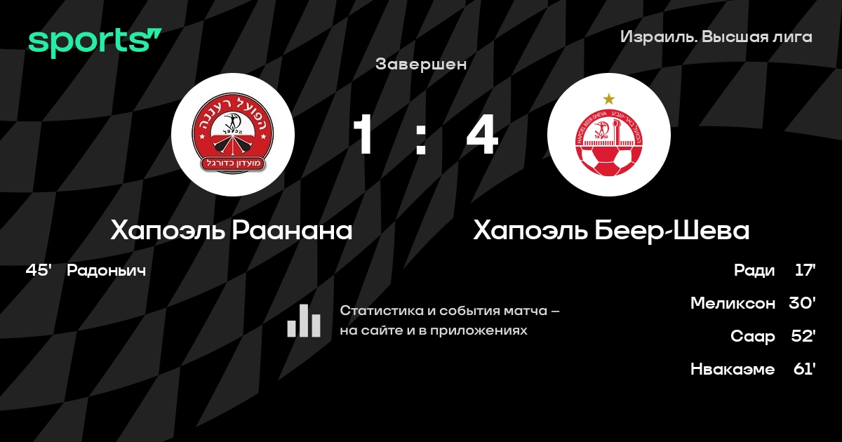 Гореш - Давидзада, Вильям, Цедек, Битон - Ради, Огу, Меликсон, Хобан - Саар, НвакаэмеЗапасные: Левкович, Таа, Бузагло, Браун, Гадир