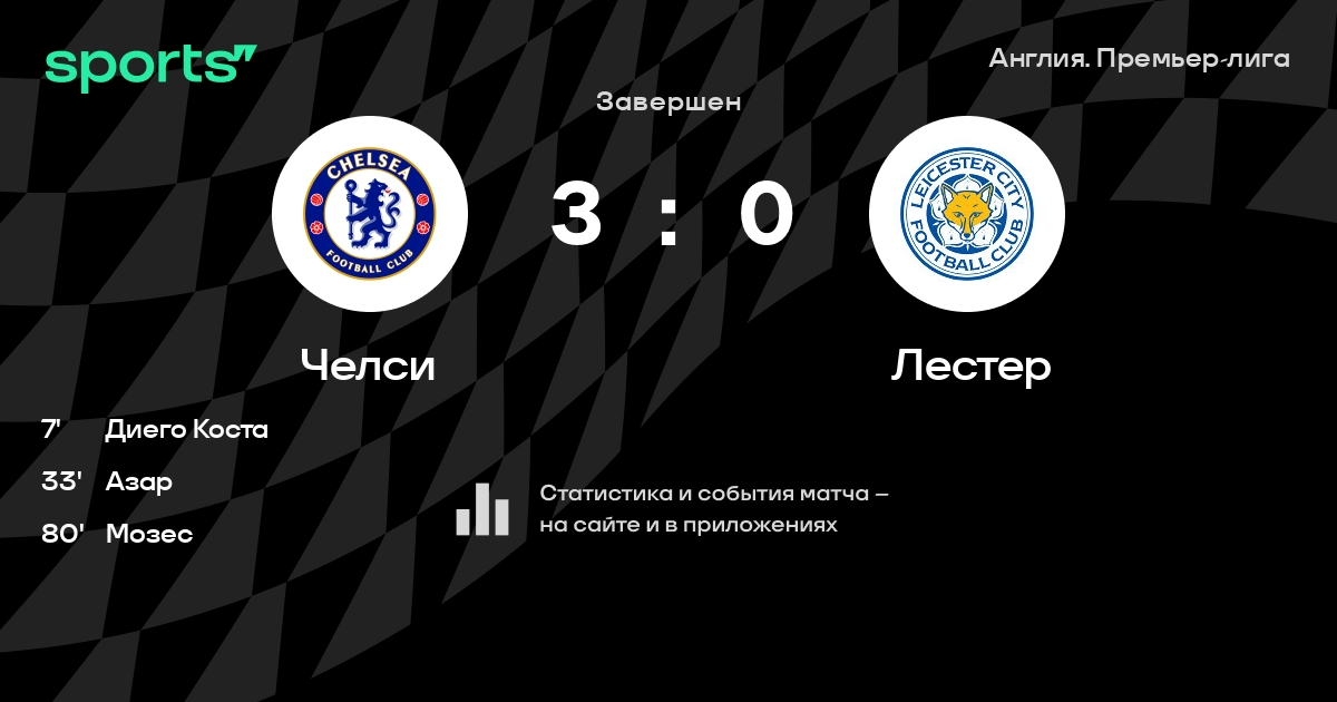 Куртуа - Кэйхилл, Давид Луиз, Аспиликуэта - Алонсо, Матич, Канте, Мозес - Азар, Диего Коста, ПедроЗапасные: Бегович, Айна, Чалоба, Лофтус-Чик, Батшуайи, Соланке