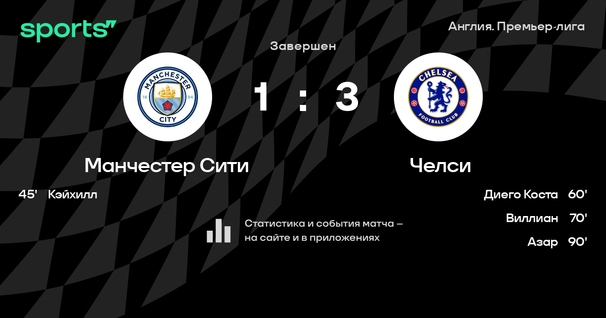 Куртуа - Кэйхилл, Давид Луиз, Аспиликуэта - Алонсо, Фабрегас, Канте, Мозес - Азар, Диего Коста, ПедроЗапасные: Бегович, Иванович, Айна, Чалоба, Оскар, Батшуайи, Виллиан