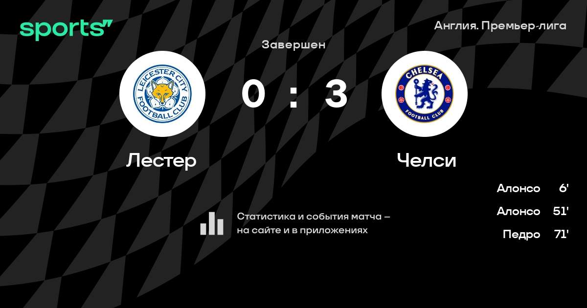 Куртуа - Кэйхилл, Давид Луиз, Аспиликуэта - Алонсо, Матич, Канте, Мозес - Педро, Азар, ВиллианЗапасные: Бегович, Иванович, Зума, Чалоба, Лофтус-Чик, Батшуайи