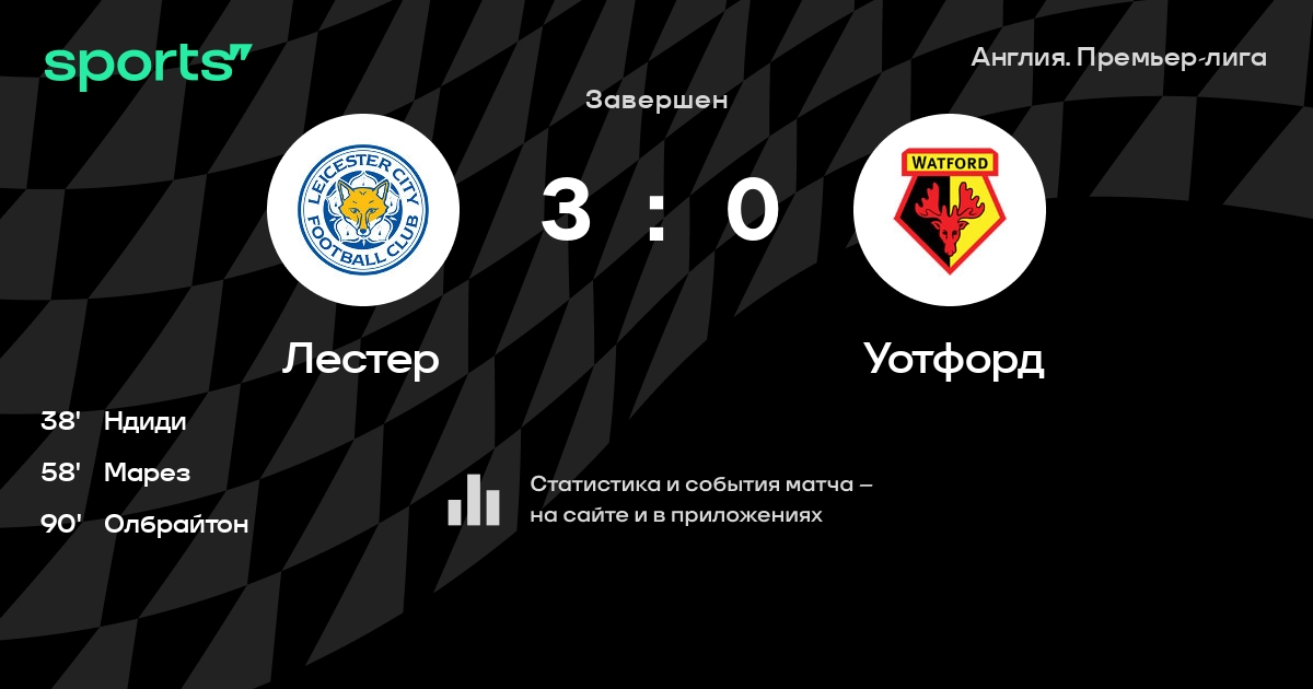 Шмейхель - Фукс, Хут, Беналуан, Симпсон - Олбрайтон, Ндиди, Дринкуотер, Марез - Варди, ОкадзакиЗапасные: Цилер, Амарти, Чилуэлл, Грэй, Муса, Слимани