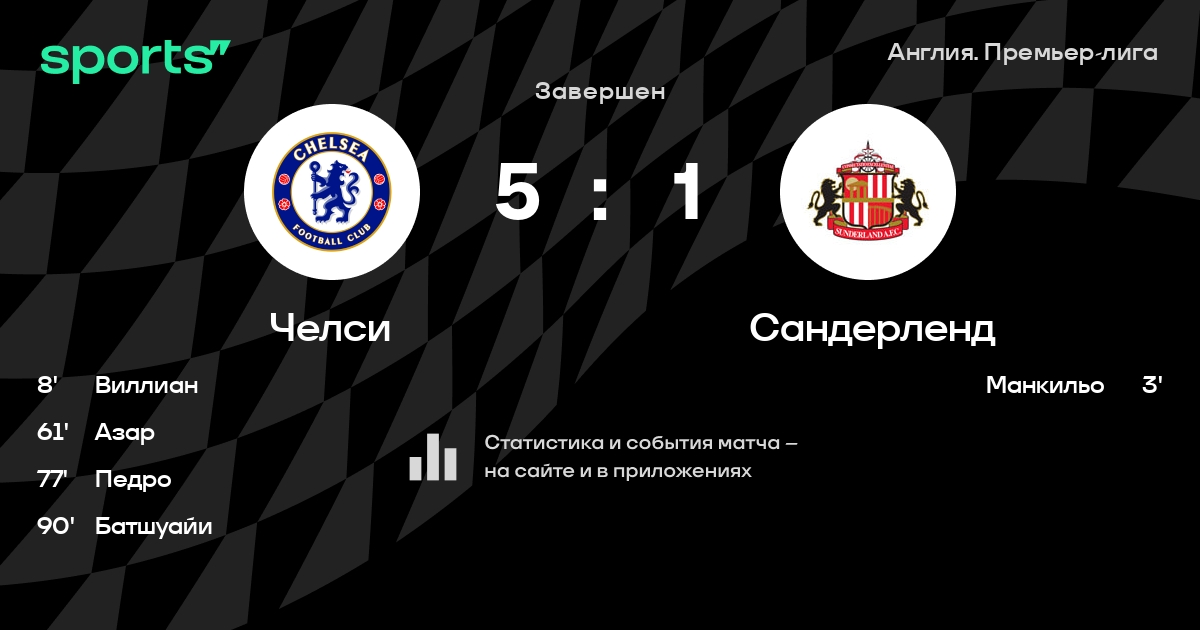 Куртуа - Терри, Давид Луиз, Аспиликуэта - Алонсо, Азар, Виллиан, Канте, Фабрегас, Мозес - Диего КостаЗапасные: Бегович, Кэйхилл, Зума, Чалоба, Матич, Батшуайи, Педро