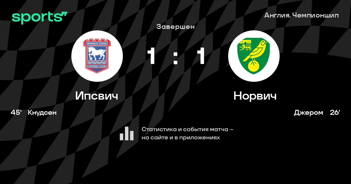 Чемпионшип. «Норвич» сыграл вничью с «Ипсвичем» и другие результаты