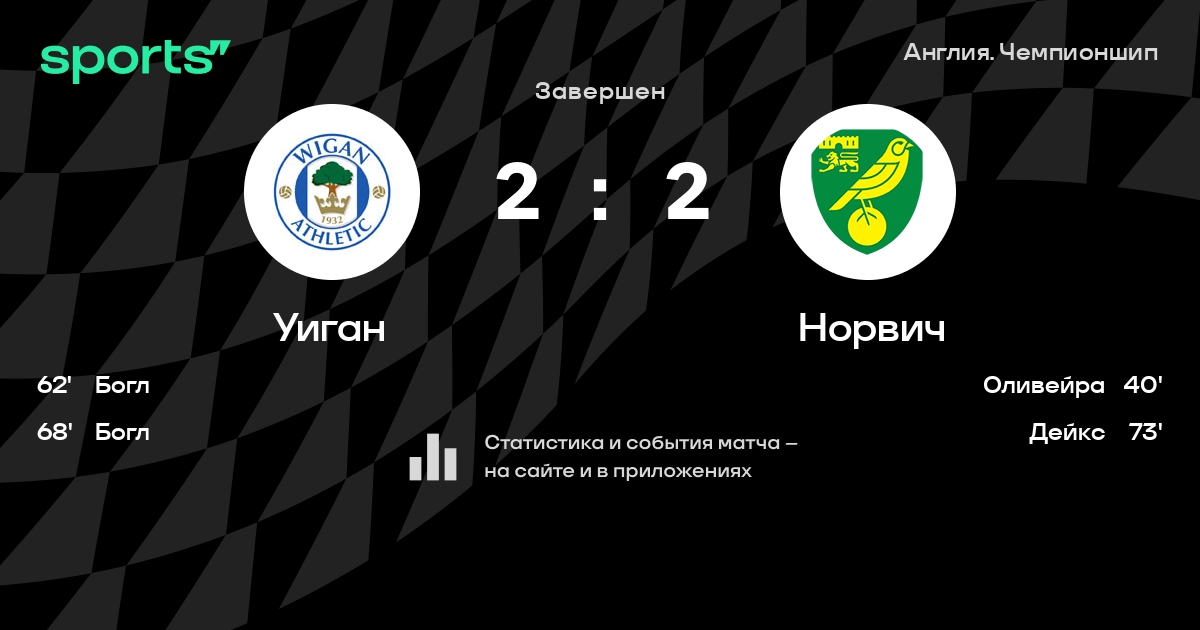 Чемпионшип. «Уиган» сыграл вничью с «Норвичем»