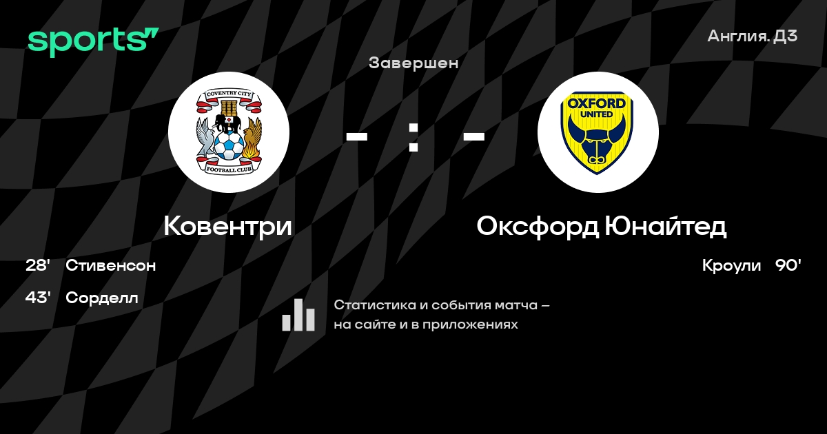 Ковентри – Оксфорд Юнайтед: коэффициенты