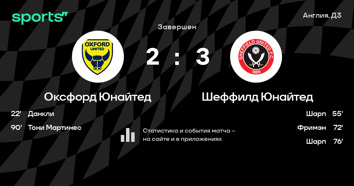 Трансляция Оксфорд Юнайтед - Шеффилд Юнайтед