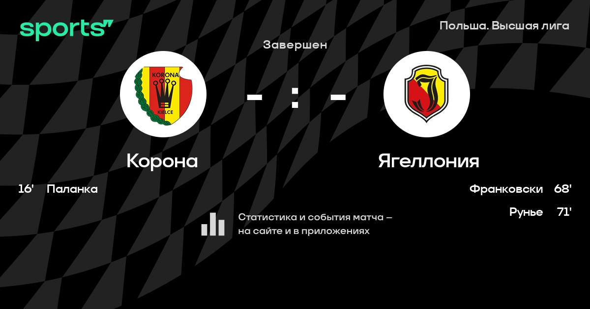 | 2 | Ягеллония | 37 | 21 | 8 | 8 | 64 | 39 | +25 | 42 | ||