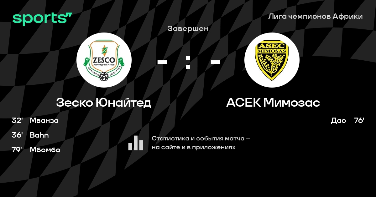 Зеско Юнайтед – АСЕК Мимозас: коэффициенты