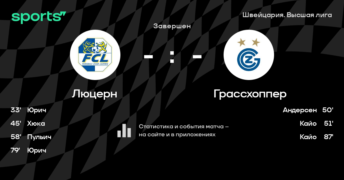 Цибунг - Лустенбергер, Гретер, Пульич - Крюэзю, Хюка, Кошта, Хаас, Шнойвли - Юрич, ИттенЗапасные: Омлин, Арнольд, Сарр, Зидлер, Янчер, Шнойвли