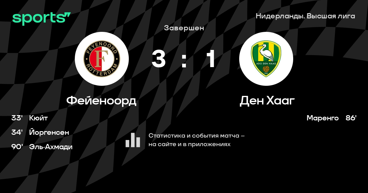 Чемпионат Голландии. «Фейеноорд» обыграл «Ден Хааг», «Аякс» – «Витесс» и другие результаты
