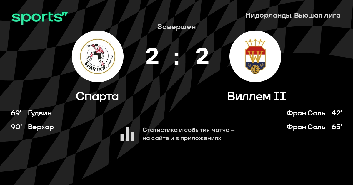 Спарта – Виллем II: Виллем II не проигрывает в 6 из 8 последних матчей против этого соперника